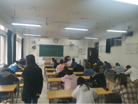 知识竞赛考试于4月20日中午12点在教学楼115教室准时开始,担任本次监考的人员有辅导员吝亚军,助理辅导员李怡湘、乔新村,考试现场秩序井然,每位学生都在认真对待,诚信答题,呈现出了良好的考试氛围,呈现出了我院学习勤奋努力,积极向上,敢为人先的精神风貌。测试内容紧紧围绕党史学习教育主题,对学习习近平总书记来陕考察重要讲话、重要指示批示精神的学习情况进行了检验。同学们严格遵守考场纪律,细致审题,认真答卷,整个测试过程严肃紧张,井然有序,充分展现了公卫学子良好的的学习态度和精神风貌。