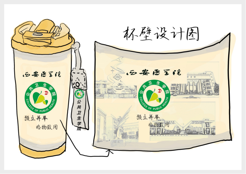 创作理念:将校园中的银杏作为背景,展现生命多彩与活力,校园东门于背面,体现学校独特韵味,将院微、院训置于其上,展现学院文化魅力。