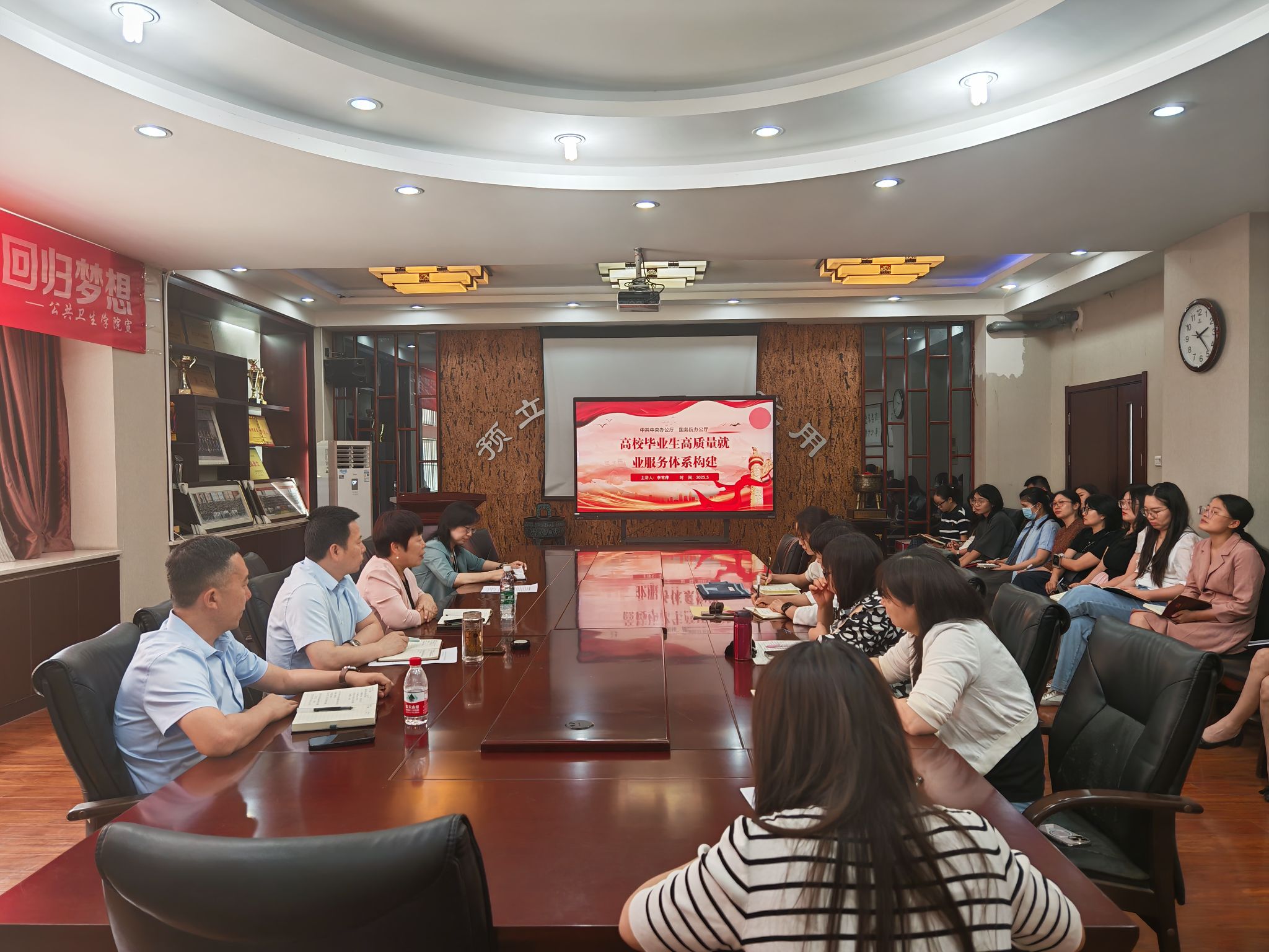 李雪萍结合我校毕业生当前的就业形势介绍了构建高校毕业生高质量就业服务体系的总体要求,并从优化培养供给体系、强化就业指导体系、健全求职招聘体系、完善帮扶援助体系、创新监测评价体系、巩固支持保障体系等方面详细介绍了构建高校毕业生高质量就业服务体系的具体内容,李雪萍表示,就业工作是重要的民生工程,是实现社会稳定的重要保障,要研判形势,多方协调联动,真正形成全员全方位促就业大局,做好毕业生就业工作。一是强化责任担当,做细就业服务工作;二是引导毕业生树立“先就业、再择业”的科学就业观,合理调整就业期望值;三是围绕学科专业精准开展访企拓岗,主动调研各单位用人需求;四是坚持重点群体是就业工作重中之重,做实重点群体的就业帮扶工作。