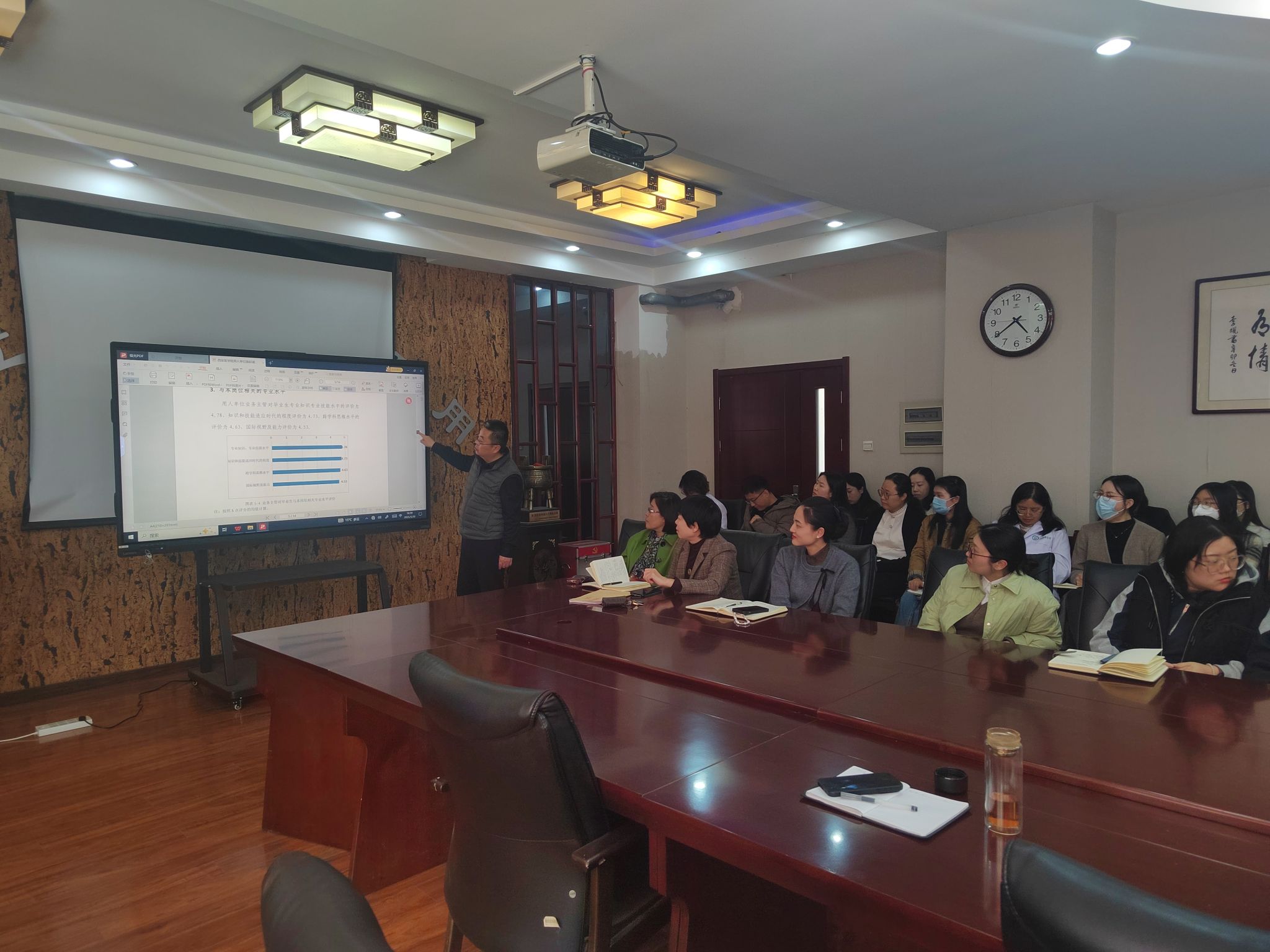 会上,副院长马永红从专业设置、教研室及教职工构成、课程建设、科研成果及平台建设等方面详细介绍了学院基本情况。随后他就《本科教育教学审核评估自评报告》《本科教学状态数据分析报告》和《教师教学体验调查报告》进行了领学,要求全院教职工重点掌握学校本科专业设置、国家及省级一流专业建设点、全校教职工及学生总数等指标结果,熟悉我院教师在师德师风、教学资源利用、教学投入等指标的自评结果。