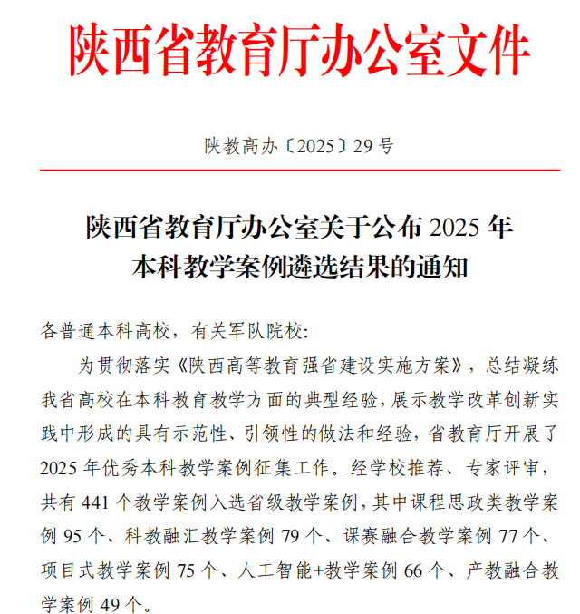 近日,陕西省教育厅公布2025年本科教学案例遴选结果,汪洁英老师及《职业卫生与职业医学》教学团队编写的 “煤工尘肺防治:产教融合的‘情境-数据’双驱教学实践”案例成功入选产教融合类省级教学案例。