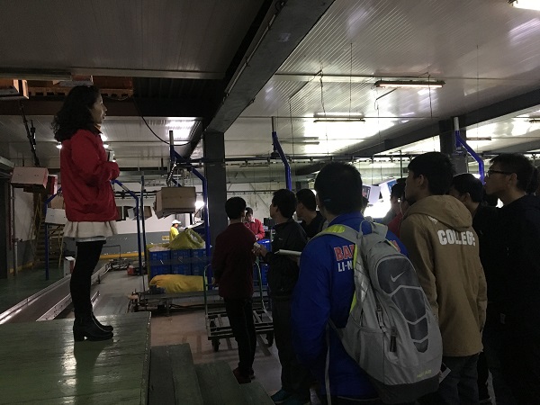 陕西华圣果业集团负责人为学生们讲解车间布局