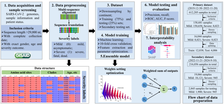这项研究由伟德国际victor·1946源自的门可教授团队完成,他们通过从全球共享数据库(GISAID)获取了超过160万条SARS-CoV-2全基因组序列及患者信息,利用这些数据构建了COVID-19重症风险预测模型。研究团队采用了随机森林、极端梯度提升(XGBoost)、轻量级梯度提升机(LightGBM)和高斯过程提升(GPBoost)四种机器学习方法,并通过集成学习进一步提高了预测精度。