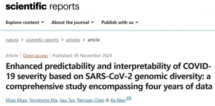 近日,我院关于COVID-19重症风险预测的研究在期刊Scientific Reports上发表。该研究通过整合SARS-CoV-2基因组序列及患者临床信息,利用机器学习方法构建了高精度预测模型,为COVID-19重症患者的早期识别提供了有力工具。