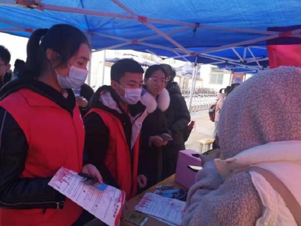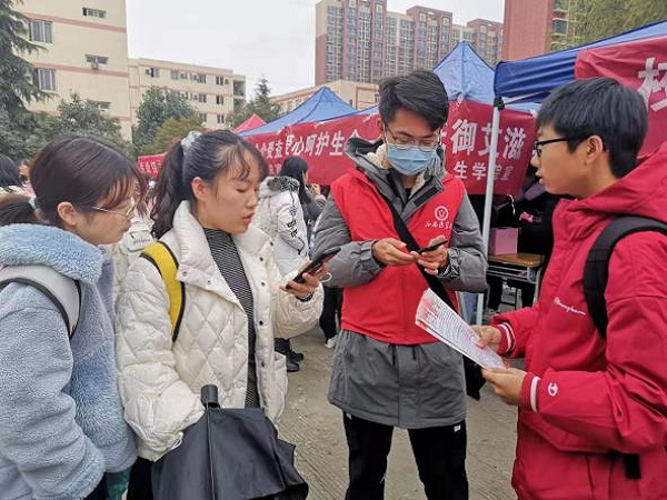 志愿者们为同学们讲解宣传资料