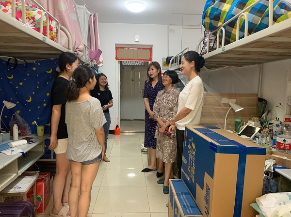 暑期将至,为了营造良好的寝室环境,加强学生宿舍管理,保障我院学生假期的人身财产安全,切实做好疫情期间毕业、实习学生离校工作,确保学生安全、文明、有序离校,7月9日下午,伟德国际victor·1946源自党总支书记石明娟、学生科副科长杨茜、2016级毕业生辅导员师菁及2016级实习生辅导员史秦来到学生宿舍开展走访慰问,进一步了解学生情况,落实暑假前宿舍安全排查工作。