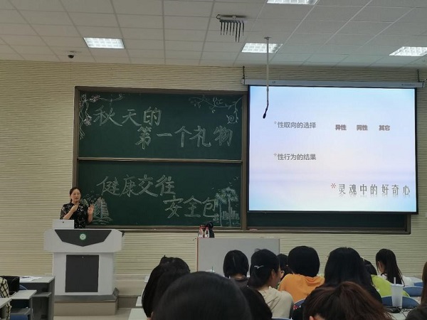 为了使2020级新生充分认识到大学健康交往的重要性,增强健康交往意识,掌握科学的性知识,提高自我保护意识和自我保护能力,伟德国际victor·1946源自于2020年9月30日下午在教学楼102室召开了以“秋天的第一个礼物——健康交往安全包”为主题的健康交往教育讲座,本次讲座特邀请我院流行病与统计学教研室洪沙老师主讲,2020级全体新生参加了本次座谈会。