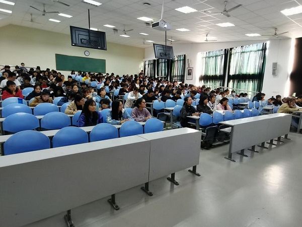 随后林老师重点介绍了我院的心理四级预防系统,即由学院-班级心理委员-宿舍长-辅导员组成的四级预防体系,全力为同学们的心理健康保驾护航。最后针对大学生适应性问题,分别从生活环境、学习环境、情绪管理、人际交往、树立良好自信心等几个方面为同学们作了详细的分析,并分享了新生面对客观环境的变化所需要掌握的应对方法和技巧,当遇到问题时不要放任自流,应积极寻求舍友、同学、导员的帮助。在整场讲座中,林老师引经据典、妙语连珠,同学们认真聆听,一次次的热烈掌声,将讲座气氛逐渐推向了高潮。