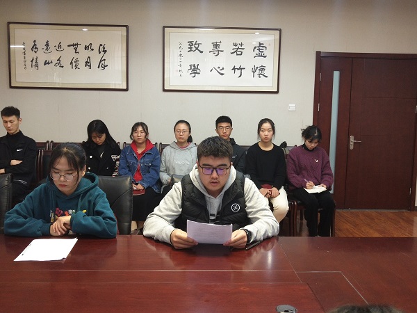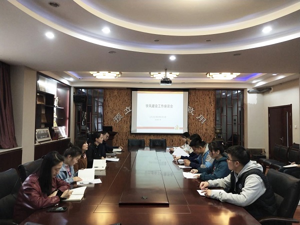 为加强学风建设,培养积极的学风氛围,努力营造以优良教风带学风,以文明学风促教风,营造健康向上、文明和谐的校园氛围。结合《伟德国际victor·1946源自关于开展2020-2021学年第一学期本科学生“学风建设月”活动实施方案》,我院学生党支部建立“党建+学风建设”育人计划,以开展学风建设活动为抓手,把党员促进学风建设的育人职责明细化、任务化、常态化、制度化。 为进一步广泛听取学生对学风建设的意见建议,关心学生在学习、生活中存在的问题和困惑,增强我学院学风建设工作的针对性和有效性。2020年11月17日,伟德国际victor·1946源自学生党支部在学院会议室召开了学风建设工作座谈会,学生科副科长杨茜、学生第二党支部书记薛羿冰、学生第三党支部书记林鑫鑫、辅导员张嘉旭、吝亚军和部分学生党员、共青团员代表参加了会议,会议由学生第一党支部书记史秦主持。