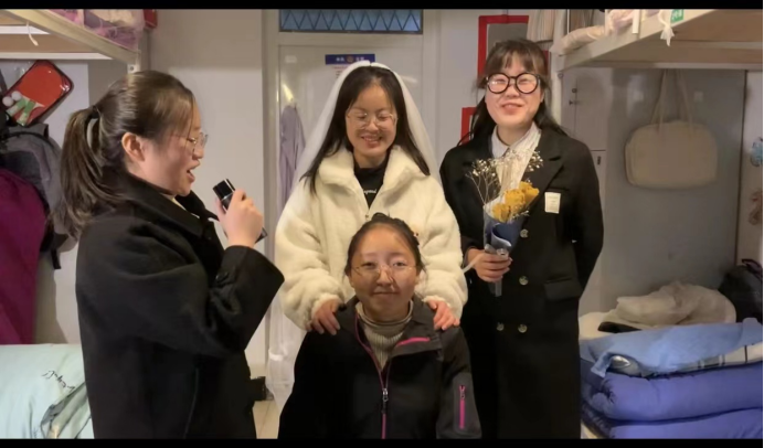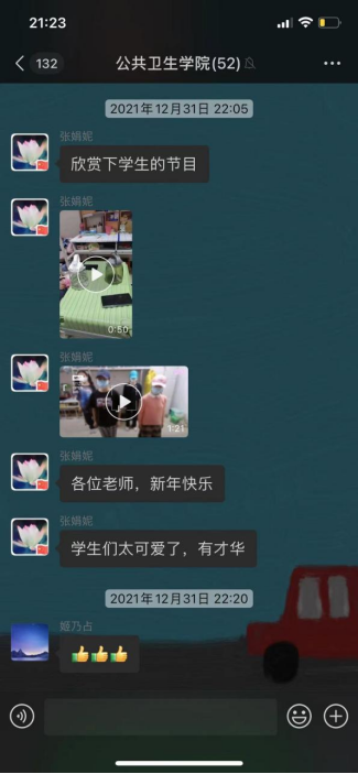 随后,学院党总支书记石明娟书记、学生科科长杨茜老师、辅导员刘田园老师、新生导师及全年级182名同学又齐聚一堂,开始了我们的“西望你我,安然无恙”线上跨年晚会。多才多艺的同学们摩拳擦掌,跃跃欲试地准备用才艺大干一场,一展拳脚。我们的节目在欢声笑语中得到了老师们的大拇指。