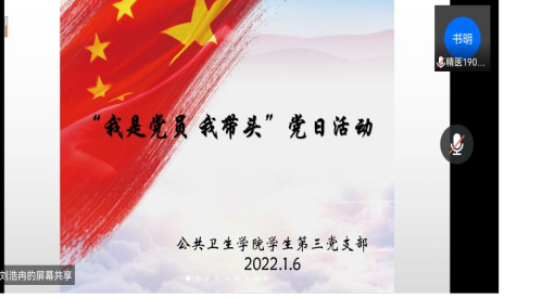 为进一步提高疫情期间同学们在宿舍学习的热情,明确学业规划及学习目标、掌握学习方法,发挥党员模范带头作用,伟德国际victor·1946源自学生第三党支部于2022年1月6日晚组织开展“我是党员我带头”学习规划分享线上主题党日活动,此次活动由三支部五位品学兼优的党员,来为大家分享疫情期间自己的学习安排、学习方法,本次活动由学生第三党支部宣传委员刘浩冉主持,学生第三党支部全体党员和积极分子参加了会议。