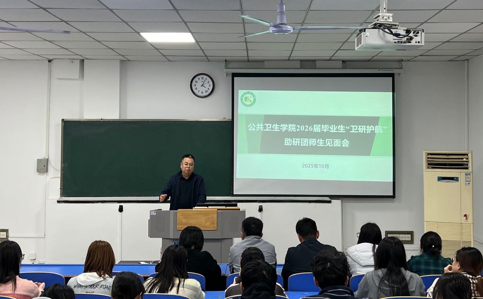 会上,张东宁书记结合学院历年考研成果,深刻阐释了考研对毕业生个人发展与学院学科建设的双重意义。他指出,为切实解决学生备考中的“院校选择难、专业课攻坚难、复试准备难、心态调节难”四大痛点,学院经过多轮遴选,组建了由23位专任教师构成的助研导师团,师资覆盖公共卫生领域各核心方向,且均具备丰富的教学经验与考研指导经历。张书记以自身考研经历为例,恳切叮嘱学子:“备考既要下足‘狠心’打基础,更要忌‘闭门造车’,遇到瓶颈或压力时,一定要主动对接助研团老师,让优质师资资源成为考研路上的‘助推器’。”他的话语既为学生指明了方向,更让在场学子感受到了学院的暖心关怀。