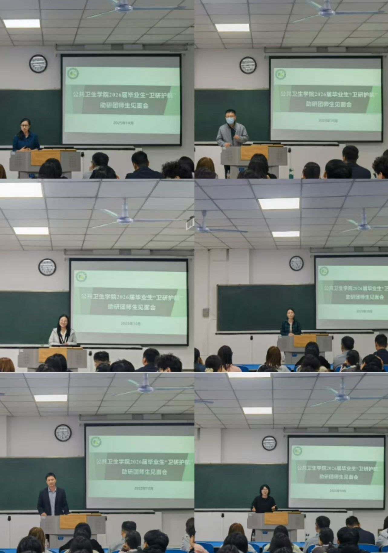 在导师自我介绍与经验分享环节,6位导师结合各自专业领域与指导优势,为学生带来了极具针对性的“备考干货”。劳动卫生与环境卫生学教研室汪洁英老师聚焦该专业考研院校的招生偏好,详细拆解了专业课复习重点与考点分布,帮助学生精准把握复习方向;流行病学教研室夏茹意老师以求学经历为切入点,强调“初试成绩是考研成功的关键”,并分享了“聚焦高频考点、合理分配复习时间”的实用方法;流行病学教研室张海瑞老师鼓励备考学生可以组建备考小组,通过“资料共享、互助讨论”提升复习效率,避免单打独斗的“低效备考”;统计学教研室石国帅和李欣蕊老师针对统计学这一“难点学科”,分别讲解了复习技巧与解题思路,帮助学生攻克学科短板;精神医学教研室李娜老师则从“备考心态调节”方面,为学生提供了全方位的指导建议。老师们的分享既有专业高度,又贴近学生需求,赢得了现场学子的阵阵掌声。