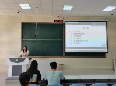 朋辈引领,榜样同行,带着同样坚定的信念,在黑暗中摸索前行明灯就是最好的指引。考研经验交流会是考研方法的建议分享,更是学习路上的暖心传授。本次分享会邀请了我院预防1624班雷欢、预防1622班张洁洁、精卫1611班谢晶晶、精卫1611班张喜同四位考研成功的优秀学子做现场交流。四位同学就自己择校、备考和调剂时的学习体会、心路历程和应对技巧,考研复试的时间与流程、面试注意事项等大家关心的问题进行了经验分享。