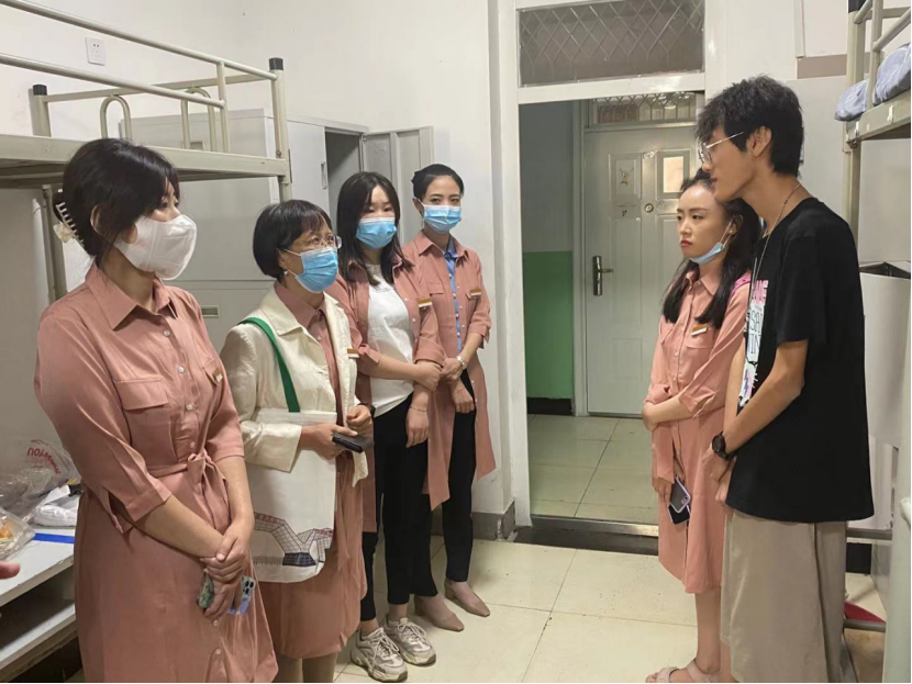 探访期间,院领导走访了女生宿舍4号公寓和男生2号公寓,详细了解了新生的宿舍入住情况,询问他们入学后的思想动态,新生积极表达了自己的想法。在与同学们深入交流时,石书记表示,学院对新生入学工作非常重视,他要求新生辅导员密切关注新生学习生活安排,要防疫意识不松懈,扎实推进各项学生工作。学生科科长杨茜关切询问了新生目前的生活状况,她提醒同学们要注意人身和财产安全,学会合理安排入学后的学习生活,尽快适应大学生活。