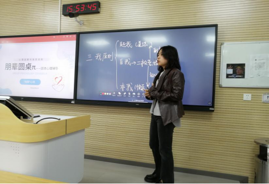 本次活动主题以弗洛伊德的人格发展理论为理论基础,参照皮亚杰行为主义的四个认知发展阶段和卡尔•罗杰斯的自我理论,通过“镜中的动物世界”游戏,帮助学生在游戏中寻找个体独特性,深入认识自我,树立人生目标。康蕊清介绍活动内容后,同学们积极参与游戏,分享活动体验。在讨论的过程中,同学们感受自我,探索自我,积极思考,现场气氛热烈。