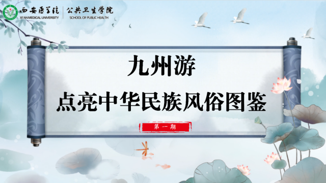 九州大地五千载,华夏文明万世长。从雪域高原到东海之滨,从白山黑水到西南边陲,各民族在漫长的历史长河中形成了独特的文化传统和民族特色,共同开发了祖国的锦绣河山,共同创造了灿烂的中华文化,共同培育了伟大的民族精神。“九州游”活动邀请来自16个民族的公卫学子化身自己家乡的代言人,带领同学们云游九州,游览祖国的大好河山,了解各民族的文化习俗、传统服饰和特色美食。