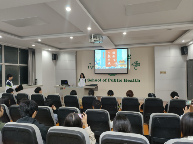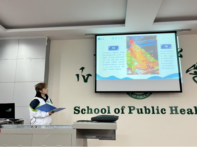 2024年11月3日,我院“一站式”学生社区“医科红心”民族学生工作站在D楼公卫报告厅举办第一期“九州游·点亮中华民族风俗图鉴”活动,邀请两位少数民族学生分享本民族的风俗文化。活动由工作站成员许鑫同学主持,我院民族专干老师马欣悦及2024级、2023级各民族学生代表出席。