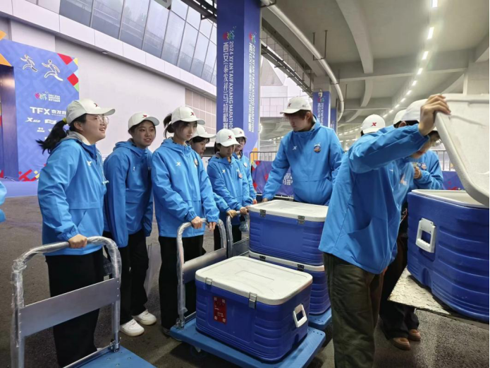 此次活动,赛事组委会为参与的志愿者们提供了丰富的餐食。为确保其他志愿者们能够保持充足的体力和精力,志愿者们及时将餐食运送至休息室,清点后为其他组的成员发放。
