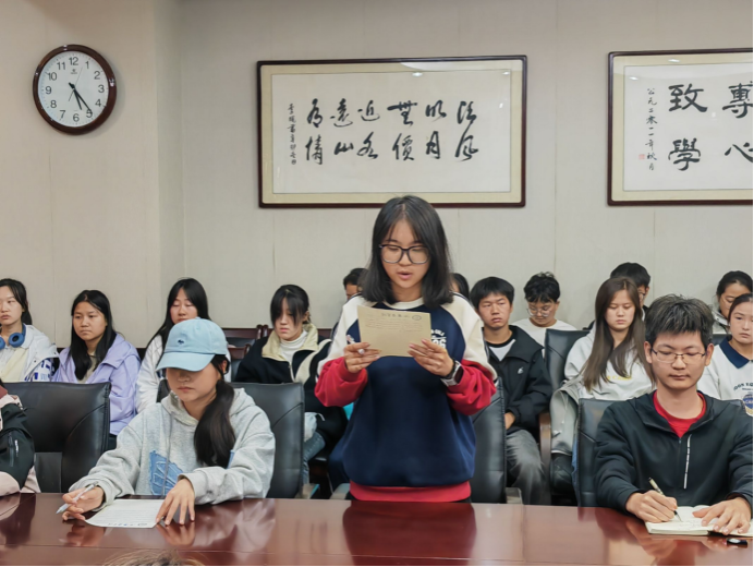 会议伊始,梁思宇同学首先为大家概述了本次会议的核心宗旨,即确保《条例》精神能传达至每一个团支部、团干部及团员,同时依托“三会两制一课”机制,强化对团员的纪律教育。继而,由团总支宣传委员姚诗音作为宣讲人,深入阐述了学习《中国共产主义青年团纪律处分条例》的重要性,并通过生动的案例分析及详细的条款解读对条例内容进行了全面的介绍,并一再强调,新时代的团员与青年应恪守政治纪律,积极履行团员职责,维护团组织的团结统一,做到诚信守实,言行一致。然后,学习会进入了激烈的讨论环节,大家分组行动、各抒己见,就条例中的关键内容、实际应用以及疑惑问题进行了深入的交流。