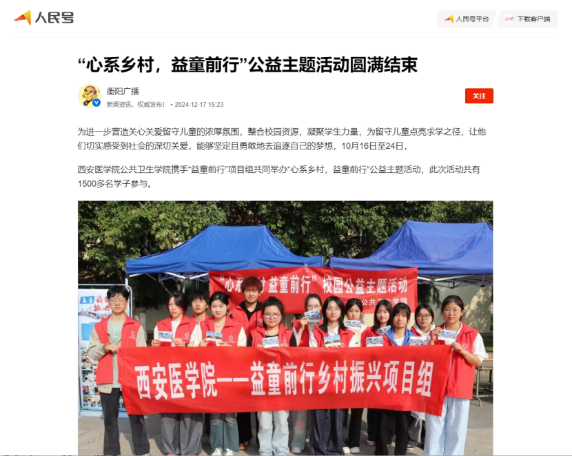 伟德国际victor·1946源自携手“益童前行”项目组共同举办“心系乡村,益童前行”主题公益活动,此次活动共有1500多名学子参与,活动被人民日报新媒体平台“人民号”发布宣传。