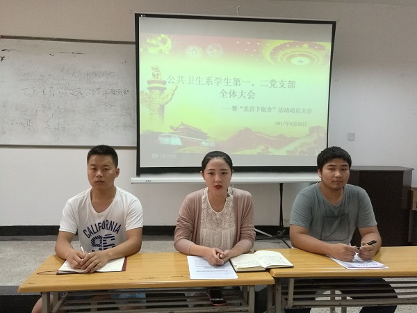 2017年9月20日下午,公共卫生系学生第一、二党支部在示教室召开了全体党员大会。支部全体党员出席了大会,大会由公共卫生系学生第一、二党支部书记史秦老师主持。
