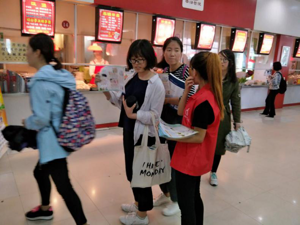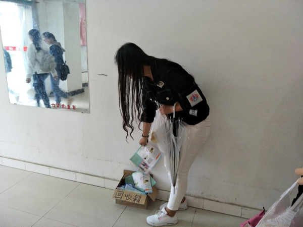 活动最后,同学们自觉地将浏览完毕的宣传资料放入回收箱。活动尾声老师和同学们合影留念。