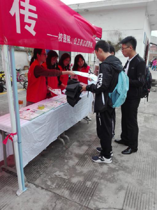 校医院预防保健科曹仲梅、公共卫生系党总支副书记张光伟、公共卫生系团总支书记杨茜参加并指导了本次外场宣传活动。