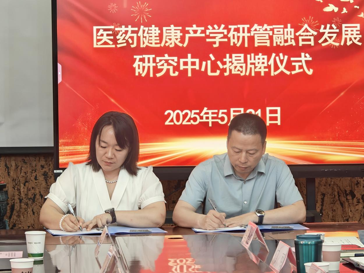 门可与杨婷代表双方签署协议。根据协议,双方将共建“医药健康产学研管融合发展研究中心”,重点围绕疾病防控技术研发、健康产业标准制定、基层卫生能力提升等领域开展深度合作。李雪萍与刁卫平共同为研究中心揭牌,标志着校政企三方合作迈入新阶段。