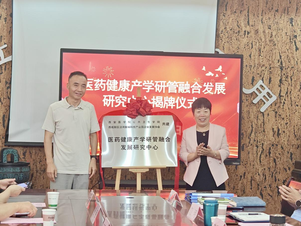 李雪萍在致辞中指出,近年来,学校始终以服务区域卫生健康事业为己任,积极响应“健康中国2030”规划纲要,持续深化与省卫健委、省疾病预防控制局的合作框架,聚焦公共卫生治理能力提升与医药产业转型升级。此次携手西咸新区泾河新城科技产业园企业发展协会共建研究中心,是校政企三方协同的创新实践,旨在通过教育链、人才链与产业链、创新链“四链融合”,为西部医药健康事业高质量发展提供智力支撑。
