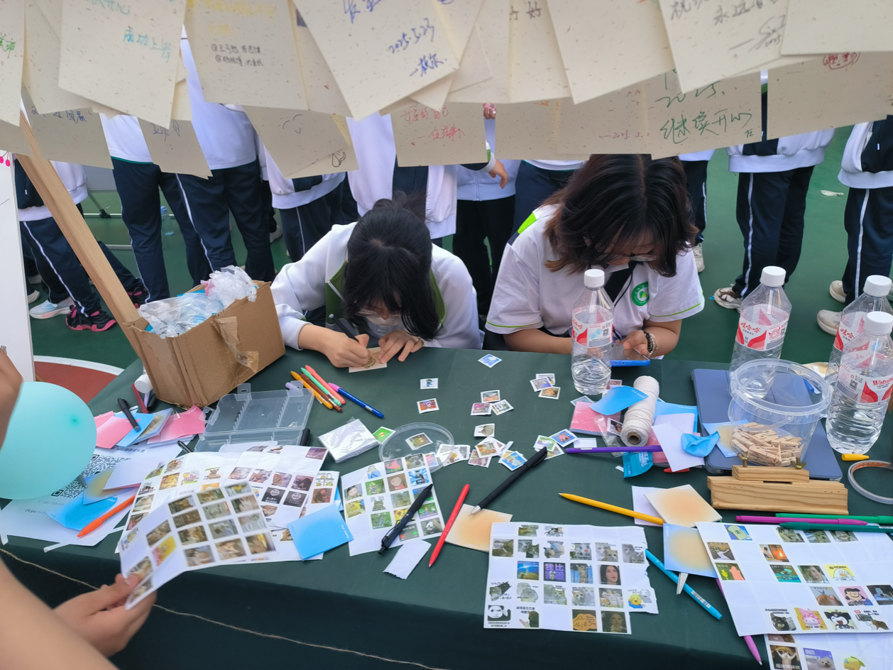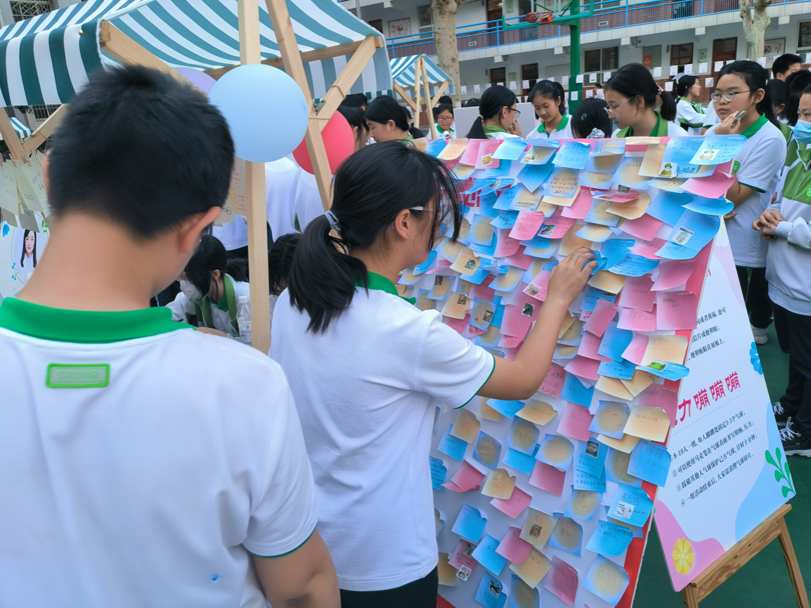 “心灵杂货铺”活动为学生们提供了一个情感抒发的自由天地。同学们通过绘画、文字等非语言形式,在“解忧便利贴”上尽情书写心情、疑问或祝福,张贴于主题展板,构建起“心灵树洞”互动墙;在“心语明信片”环节,大家书写绘制明信片并悬挂至展台,实现匿名互助。这一活动不仅帮助学生缓解了心理压力,还搭建起互助平台,传递温暖,增强了归属感。